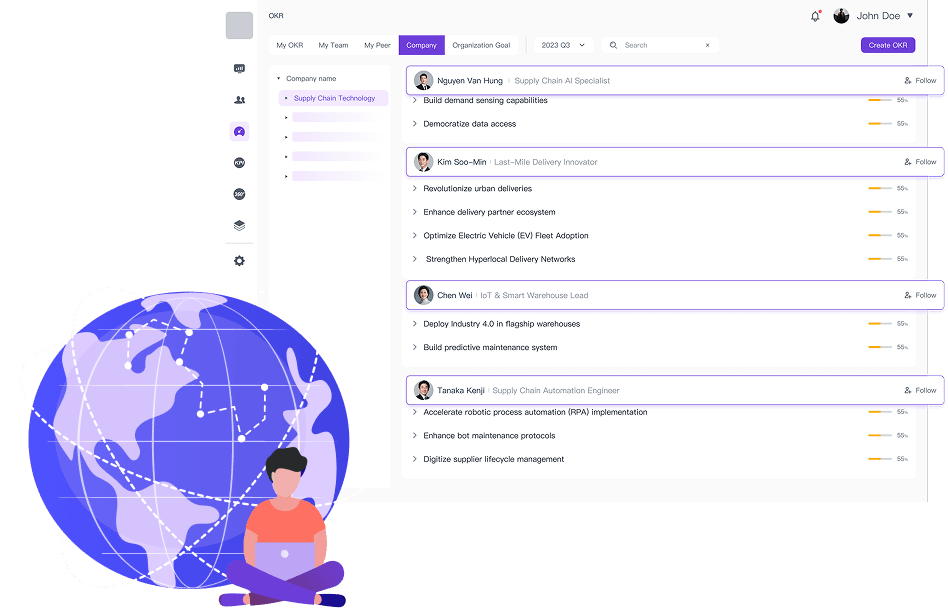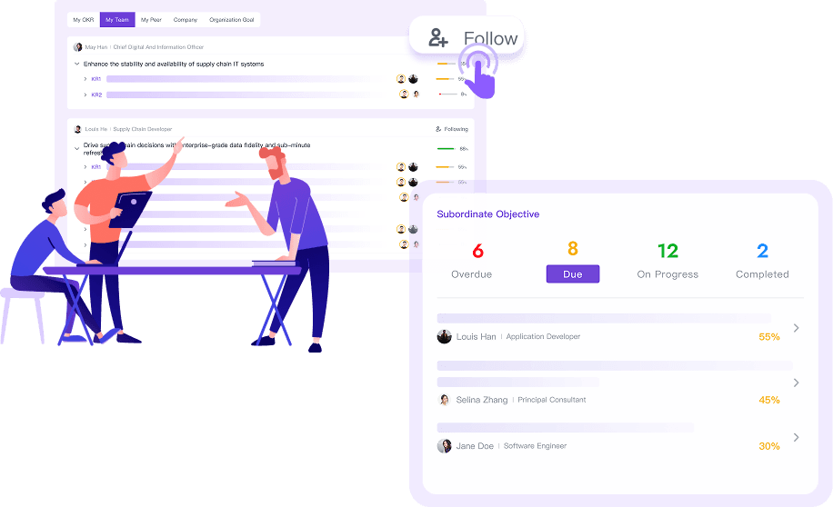 支持全球及分布式团队,灵活配置以适应多样化的组织需求。实现跨地域的无缝协作,同时在大规模下保持目标一致。